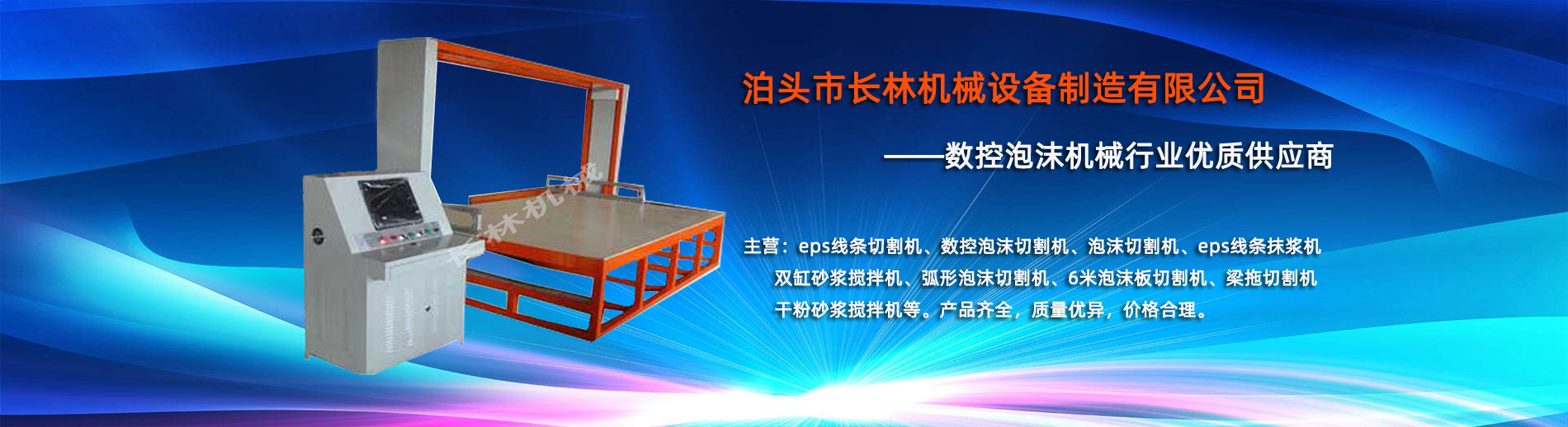 泊頭市長(zhǎng)(zhǎng)林機(jī)(jī)械設(shè)(shè)備制造有限公司座落于河北省泊頭市開(kāi)發(fā)(fā)區(qū)(qū),地處北京、天津、濟(jì)(jì)南、石家莊中心位置。京滬高速、京滬鐵路、106國(guó)道、104國(guó)道穿行于本市,交通便利。 本公司是集多功能數(shù)(shù)控泡沫切割機(jī)(jī)的自主研發(fā)(fā)、生產(chǎn)(chǎn)、銷售和服務(wù)(wù)于一體的企業(yè)(yè),eps線條設(shè)(shè)備,數(shù)(shù)控泡沫切割機(jī)(jī),發(fā)(fā)泡陶瓷切割機(jī)(jī),eps線條切割機(jī)(jī)銷往全國(guó)各地,并開(kāi)辟了國(guó)際合作的廣闊渠道。創(chuàng)(chuàng)新不斷的長(zhǎng)(zhǎng)林?jǐn)?shù)控機(jī)(jī)械有限公司經(jīng)(jīng)過(guò)幾年的不斷研究,完善了建筑裝飾構(gòu)(gòu)件的配套設(shè)(shè)備和自動(dòng)(dòng)化設(shè)(shè)備,由過(guò)去手工生產(chǎn)(chǎn)到半自動(dòng)(dòng)生產(chǎn)(chǎn)發(fā)(fā)展到現(xiàn)(xiàn)在的CNC控制的全自動(dòng)(dòng)零誤差數(shù)(shù)控泡沫切割機(jī)(jī)床。不但讓客戶在交貨期上面爭(zhēng)(zhēng)取了時(shí)(shí)間而且···